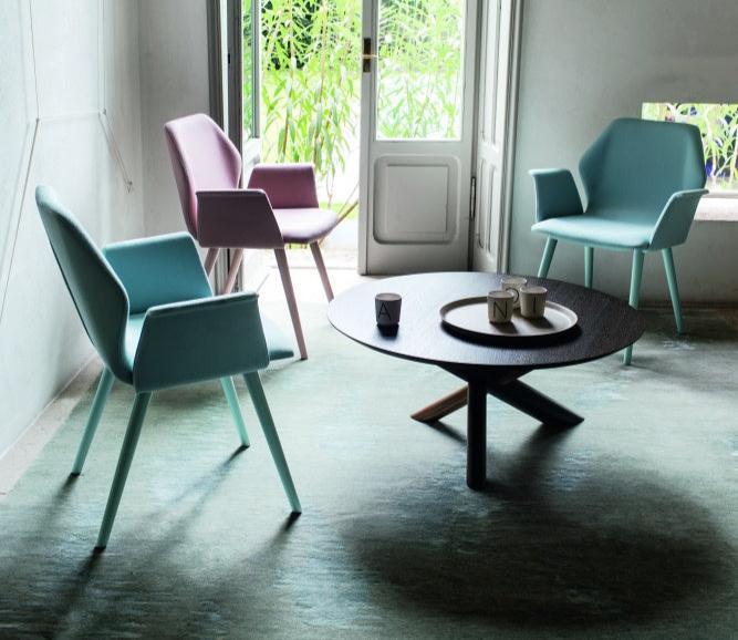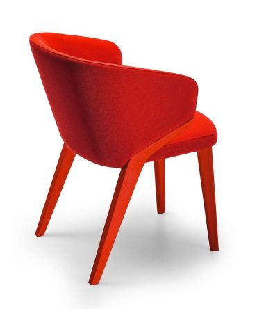The chair’s versatile design is enhanced by its metal legs, which come wrapped in beech wood that can be customized in natural, stained, or matt lacquered finishes. This thoughtful combination of materials creates a perfect balance between warmth and modern sophistication.