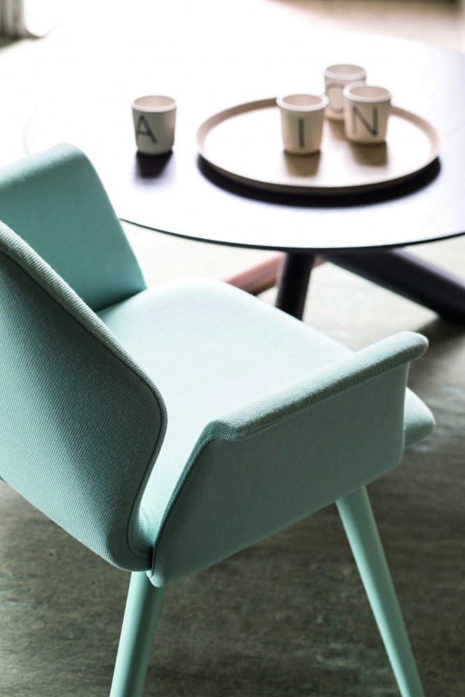 The Ava Armchair, designed by Michael Schmidt for Bross, is a sophisticated piece that seamlessly blends comfort with contemporary design. This elegant seating solution features a fully upholstered shell that creates a smooth, uninterrupted silhouette. The distinctive smooth front backrest adds to its refined aesthetic while providing excellent support.