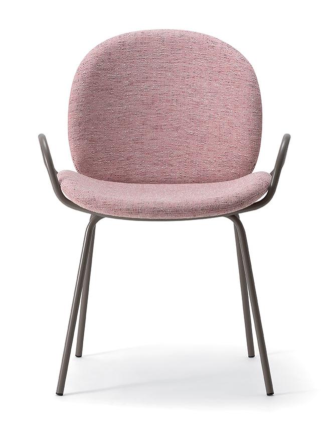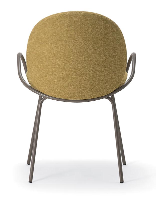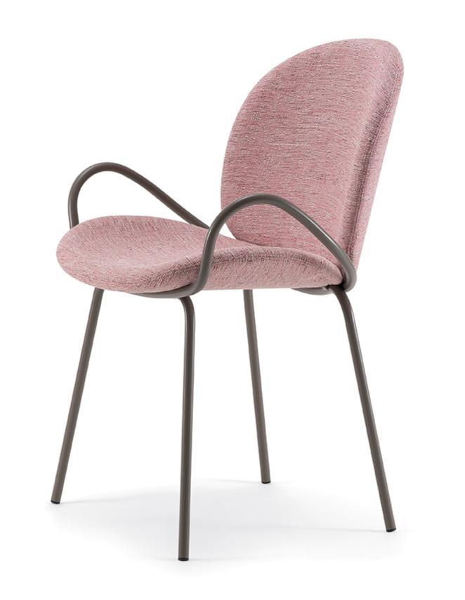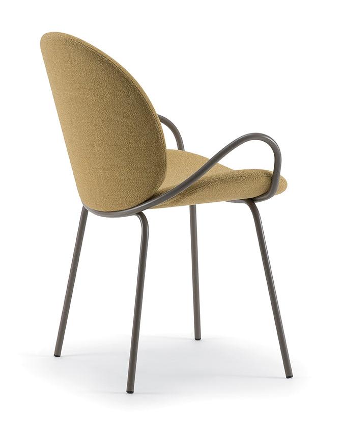 Materials: Chair with metal structure brushed bronze or lacquered; seat and back upholstered with fabric or leather.