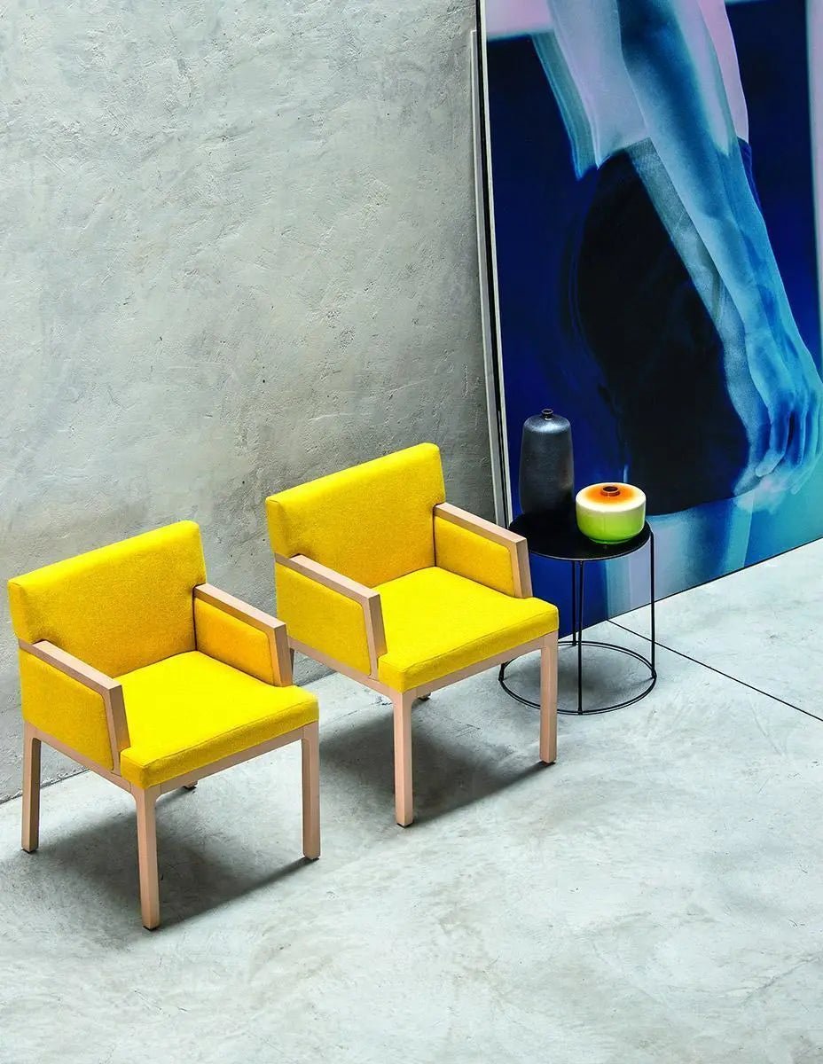 The Flux Armchair, designed by Emilio Nanni for Bross Italia, is a sophisticated piece that combines elegance with versatility. This contemporary seating solution features a refined beechwood frame that can be customized with natural, stained, or matt lacquered finishes to suit various interior styles. The chair offers exceptional comfort through its generously upholstered seat, which can be finished in either fabric or leather to match any design preference.