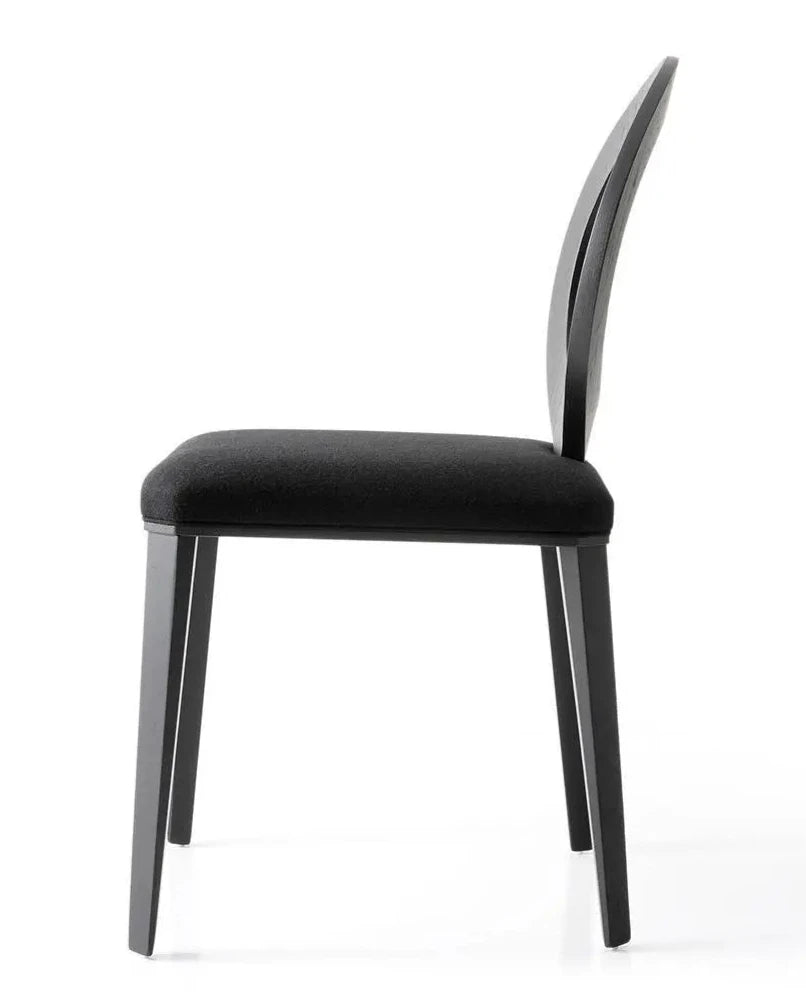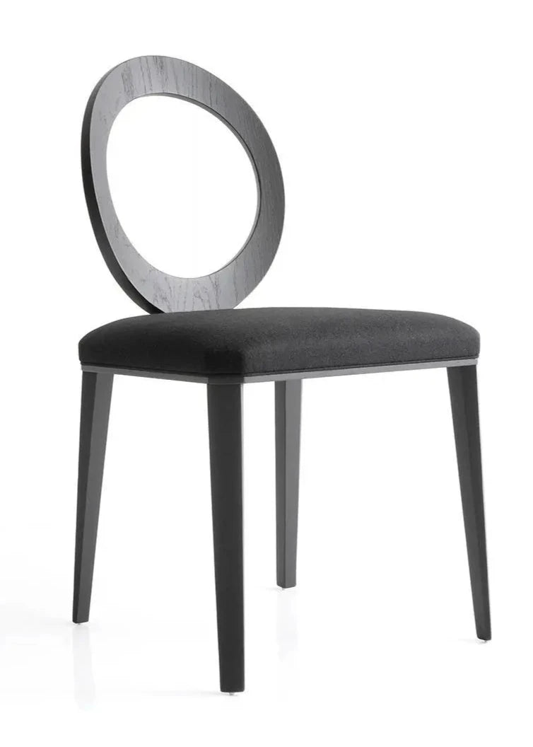 The Gemma Side Chair, masterfully designed by Enzo Berti, is an elegant dining chair that perfectly balances contemporary aesthetics with timeless craftsmanship. Its distinctive circular backrest creates a striking visual statement while offering superior comfort. The chair features a refined oak frame available in natural, stained, or matt lacquered finishes, allowing it to complement any interior style. The seat can be customized with either premium fabric or leather upholstery, making it versatile for both residential and commercial spaces.