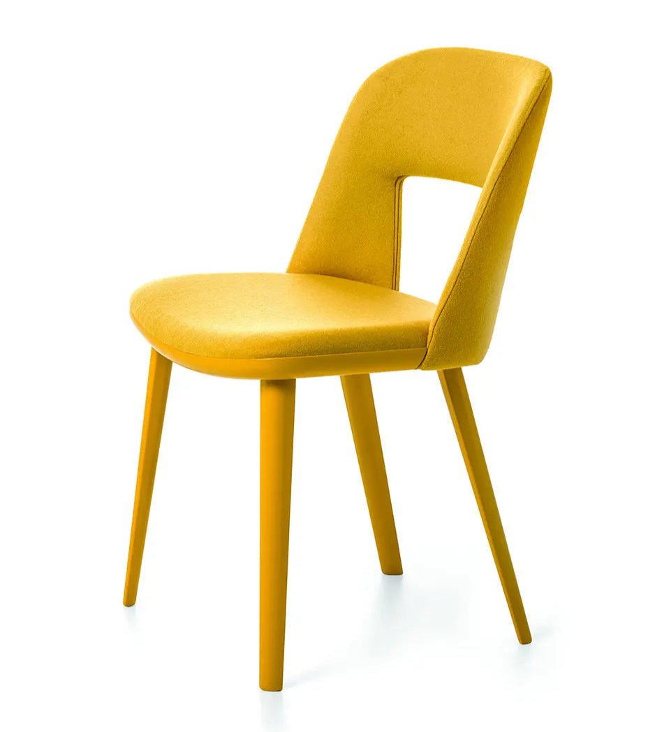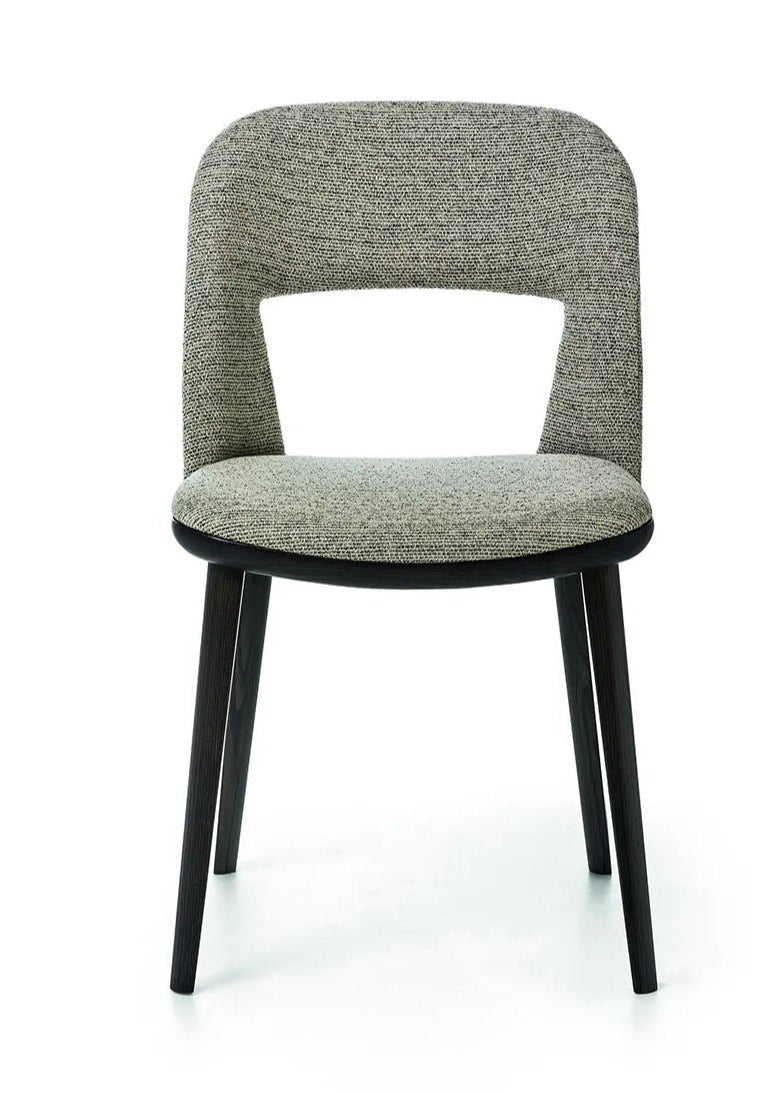 Materials: Side chair in ash or beechwood. Natural, stained or matte lacquered finish. Seat and back upholstered.