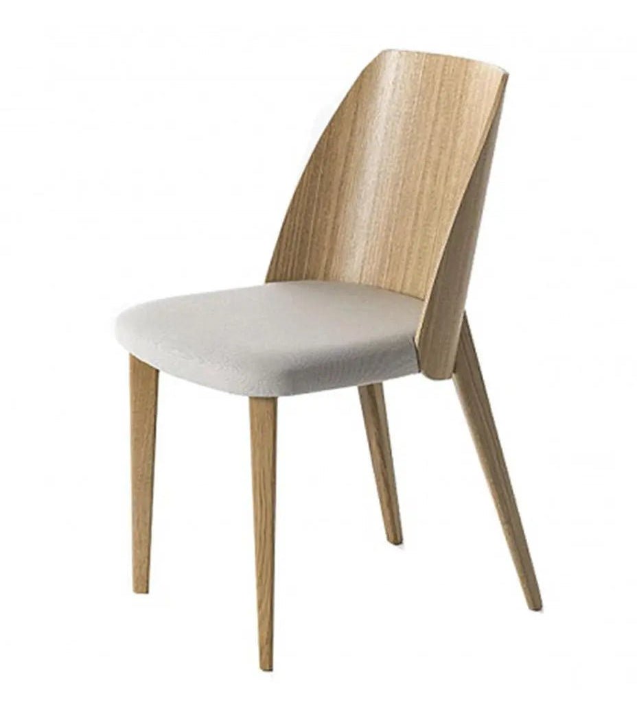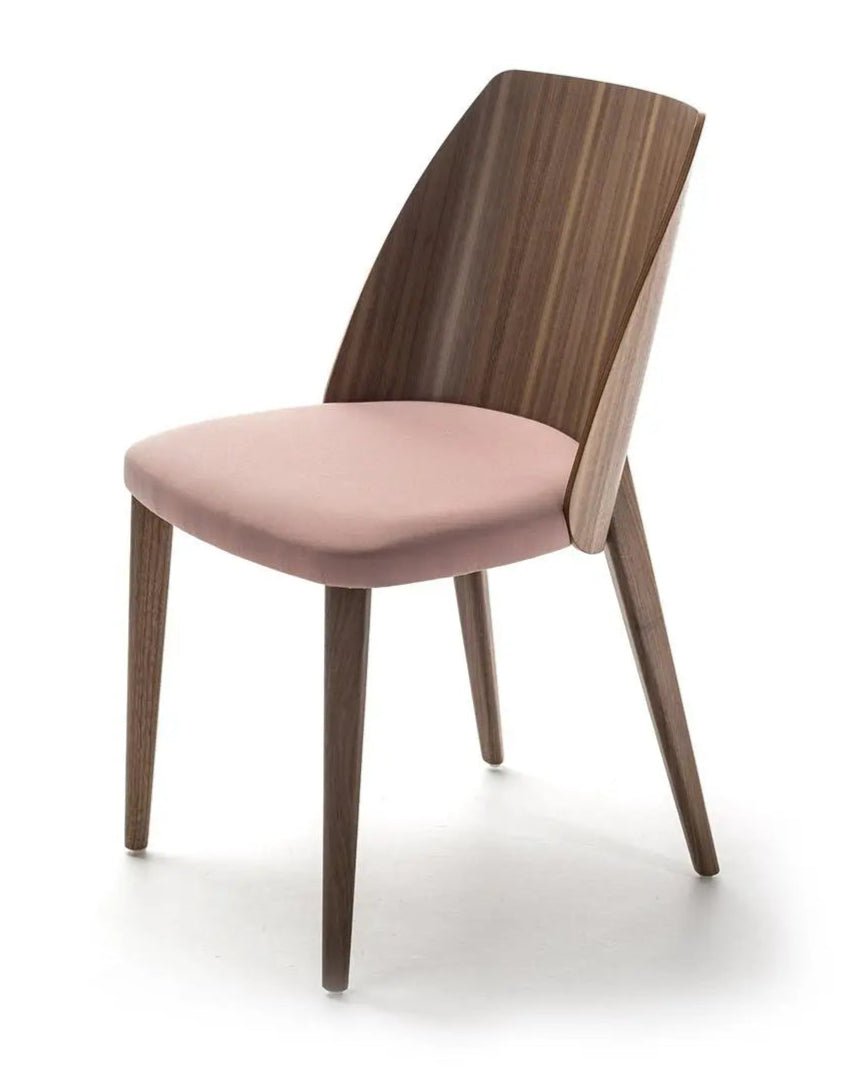 The Bross Shell Chair is a striking example of Italian modern design that marries sculptural form with functional comfort. Its most distinctive feature is a wide, thin curved plywood panel—fashioned into a graceful shell shape—that forms both the backrest and part of the seating area. The backrest is positioned slightly downward, partially concealing the seat to create a sense of intimacy and refinement, while the rear legs are cleverly arranged to hide a robust metal support structure, ensuring a sleek, uninterrupted silhouette.