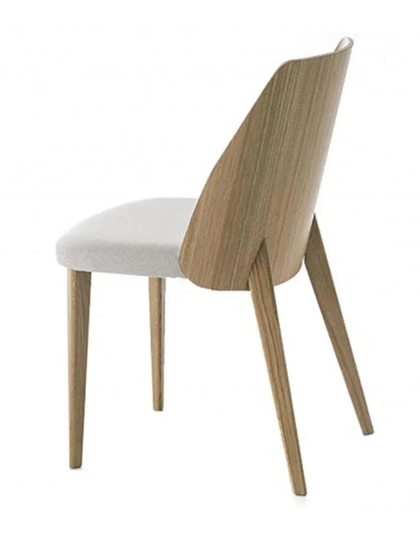 Crafted in American walnut or oakwood with options for natural, stained, or matte lacquered finishes, the chair can be tailored to suit a variety of interiors. An upholstered seat—available in fabric or leather—adds an extra layer of comfort and style. Launched in 2014 and part of the Shell collection by Bross, this chair is versatile enough to enhance sophisticated residential settings, stylish dining spaces, or contemporary public areas.